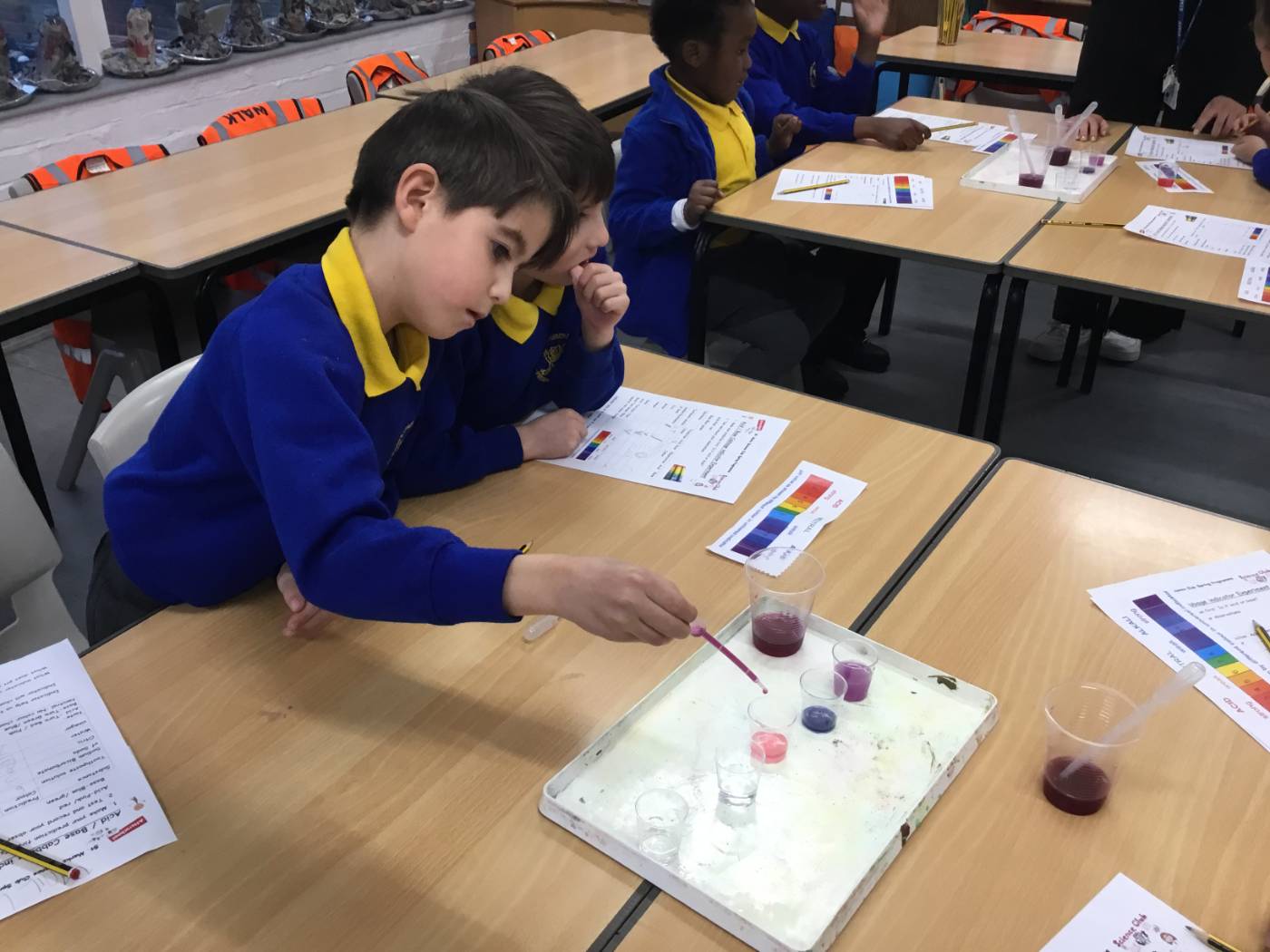 This week in science club, children got to carry out an investigation using red cabbage juice as an indicator to work out if a variety of substances were either acidic or basic. This was carried out by observing a colour change which will indicate a reaction having taken place.