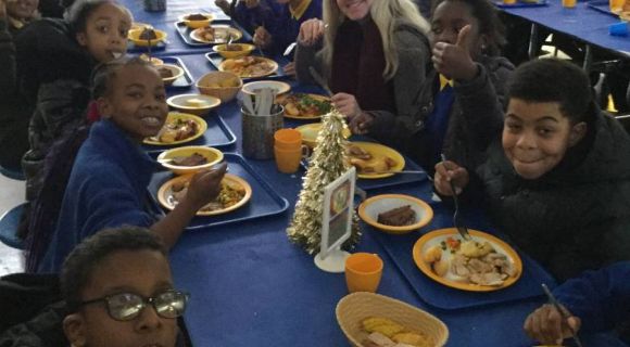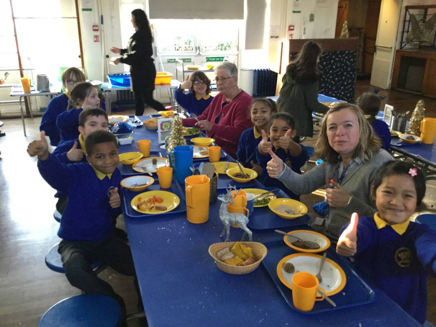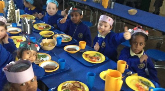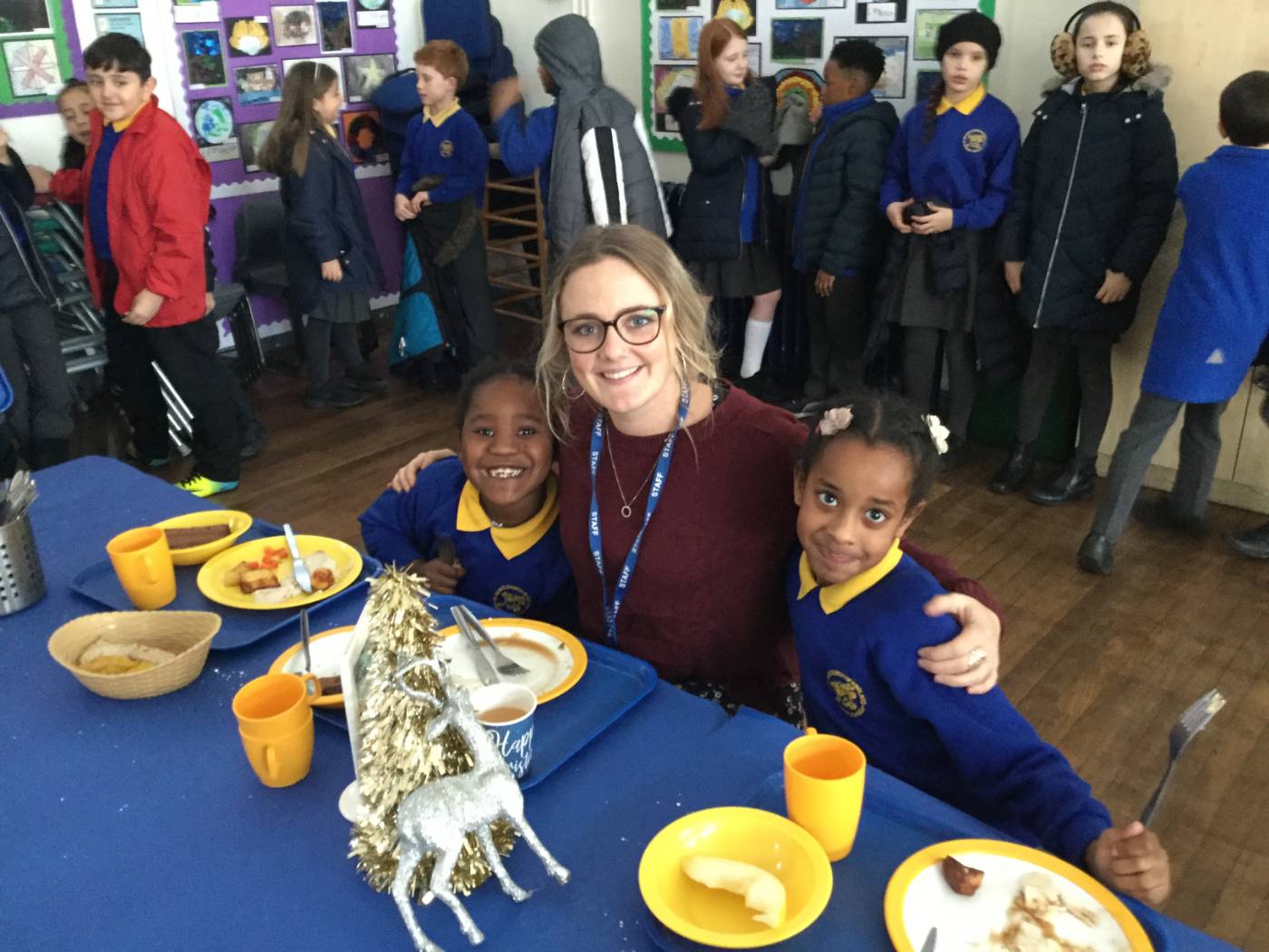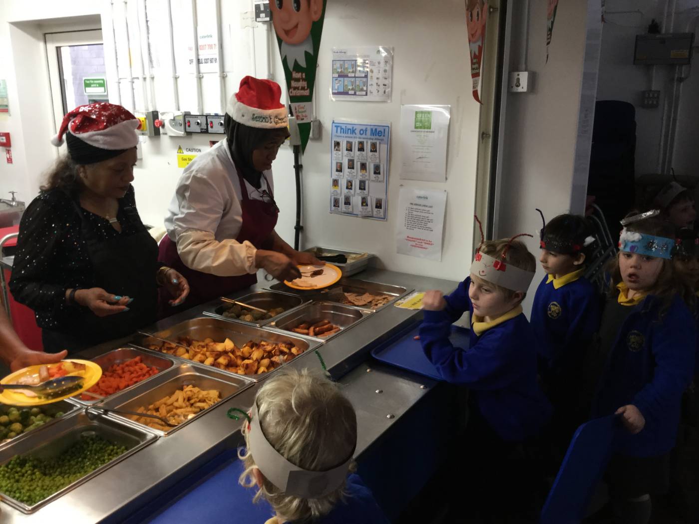 The hall was decorated, music played, children and staff tucked into a festive treat and eventually the plates were cleared (Brussel sprouts and all).