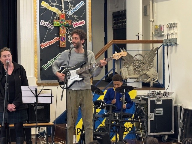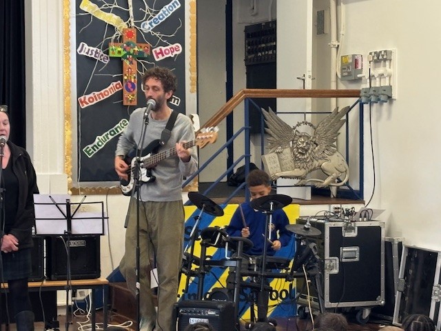 With vocals from our SENDCo, bass from Mr A, guitar from our Year 3 teacher, and the support of several talented young musicians, the hall was filled with an uplifting atmosphere. Their music set a wonderful tone for the week and brought everyone together in joyful worship singing.