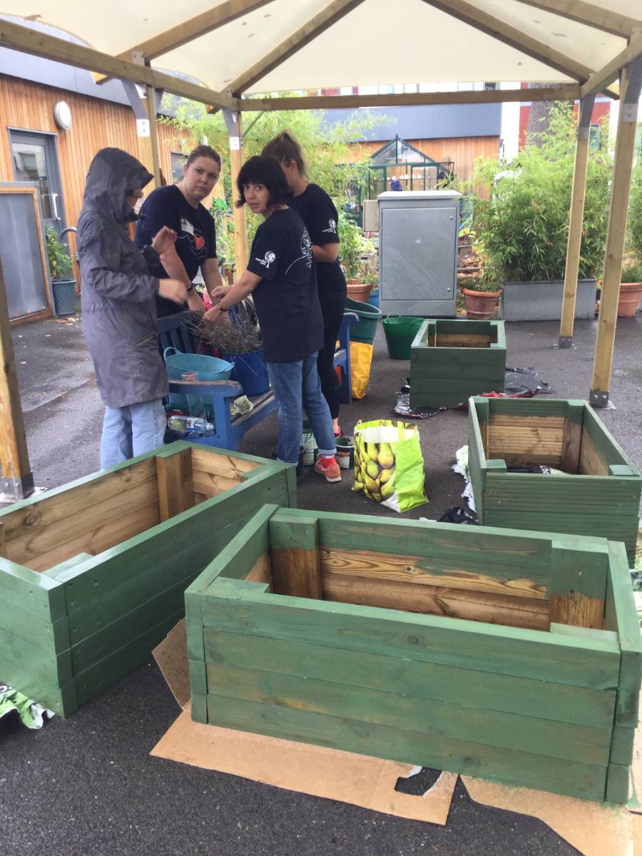 Today, St Mark’s School were lucky enough to have a visit from some eager volunteers from Expedia travel company. Organised through the ‘Big Alliance’ a group of helpers left their desks for a day to help Caroline in the garden and to make our school look fantastic. Volunteers had a variety of tasks including, sorting the compost bins; planting up the hanging baskets; tidying the greenhouse and planting in the pond garden! All volunteers said they had and amazing experience and were full of compliments for the children.