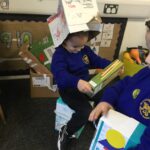 Junk modelling supports communication and language by encouraging children to discuss their ideas,use new vocabulary, and explain their creative process.