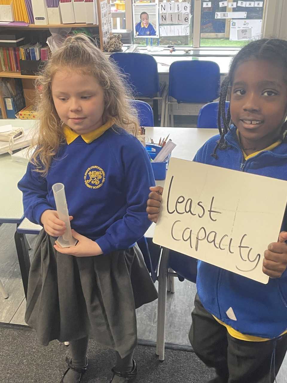 Today we became capacity and volume experts! We started by learning what these words mean, then put our knowledge to the test with a fun experiment.