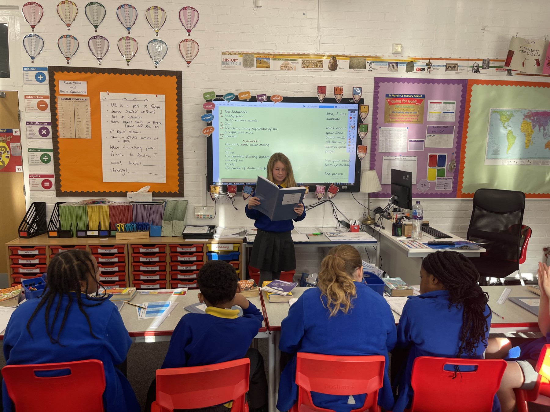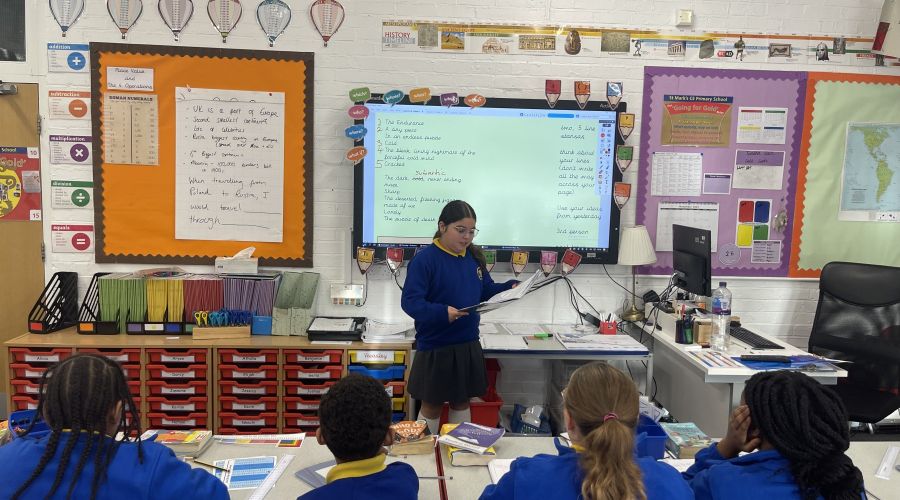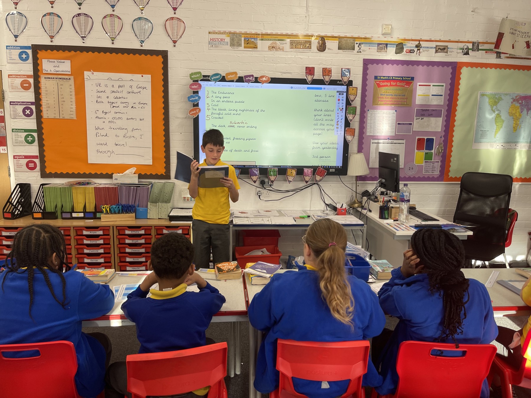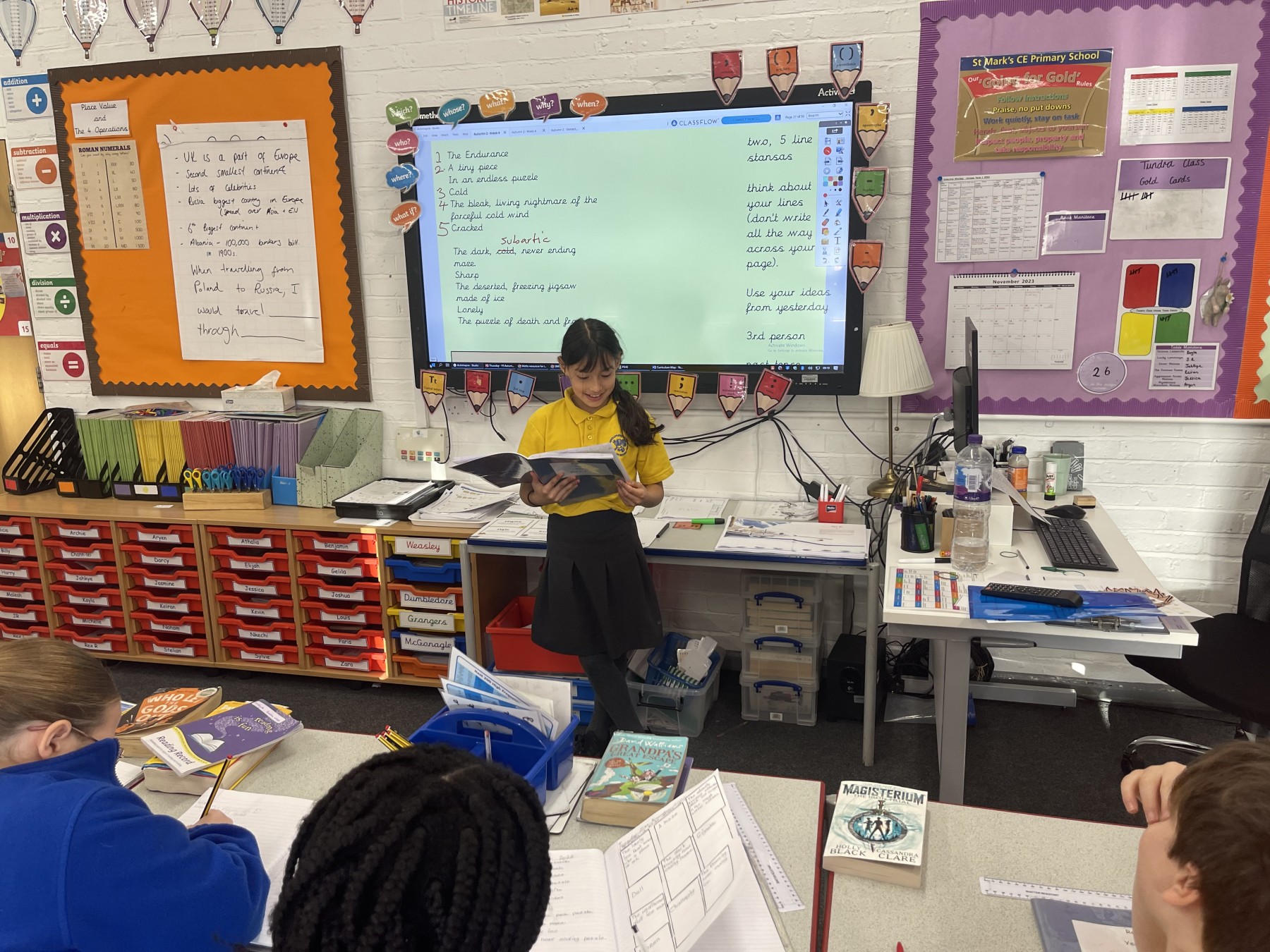 See below for images of us reciting our poetry to our peers and click here to read about what part of the unit we enjoyed most
