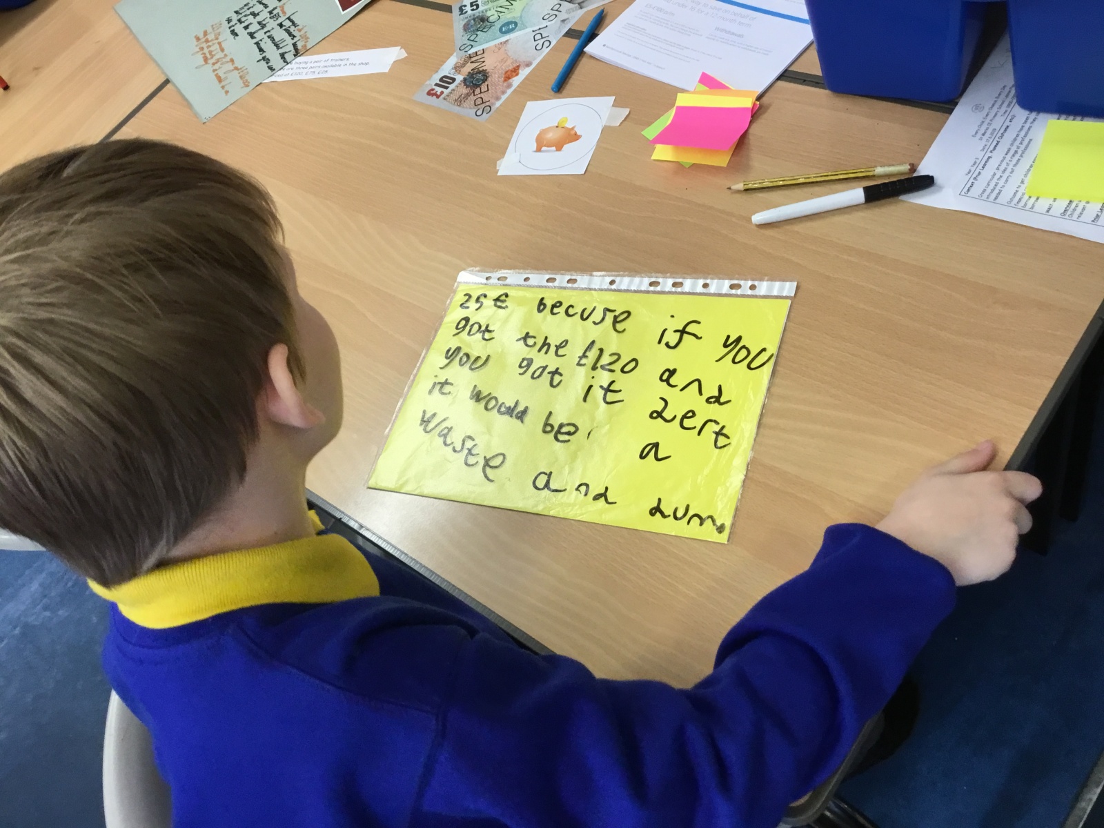 As part of our PSHE unit this term we have been discussing in class how we can save wisely and thinking about budgeting. What it means to borrow money and how that has to be paid back. We also touched on trying to understand what added interest is.
