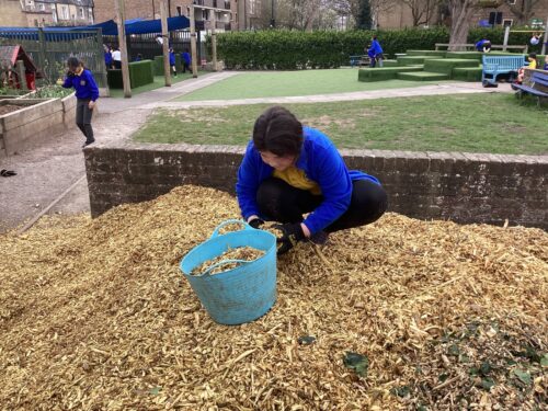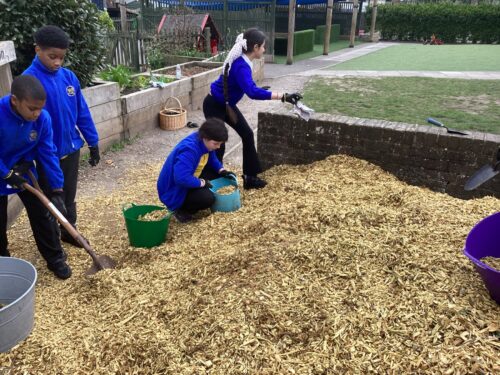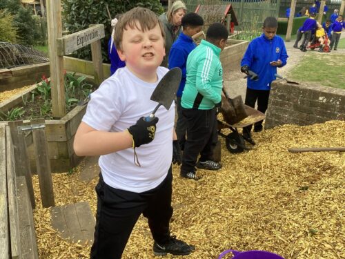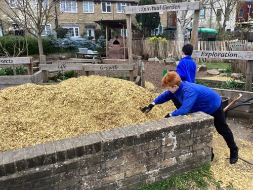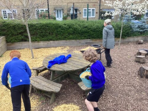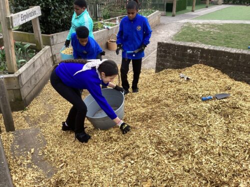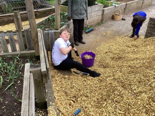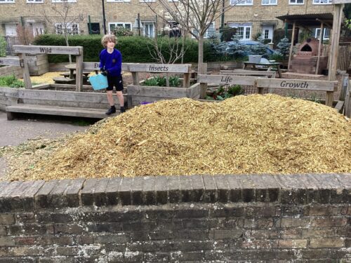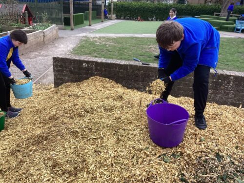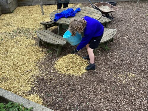 Thank you to the Thistle Class pupils who helped out this afternoon in our Spiritual Garden. There were lots of wood chips to move and you did a brilliant job!
