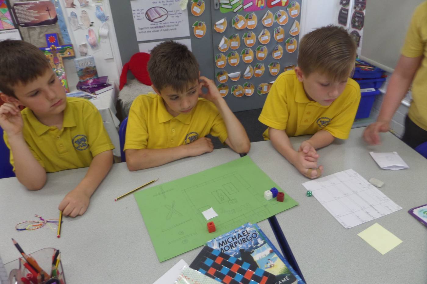 Year 5 made board gamesĀ based on their maths knowledge. These were trialed by the Year 4s. Look at the photos-the children were challenged and on task.
